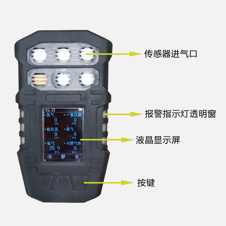 可同時檢測可燃、氧氣、一氧化碳和硫化氫、氨氣、氫氣等六種氣體,并按客戶需要對一種或任意組合多種氣體檢測,檢測結(jié)果同時顯示在屏幕上、用戶可隨時啟動手動操作