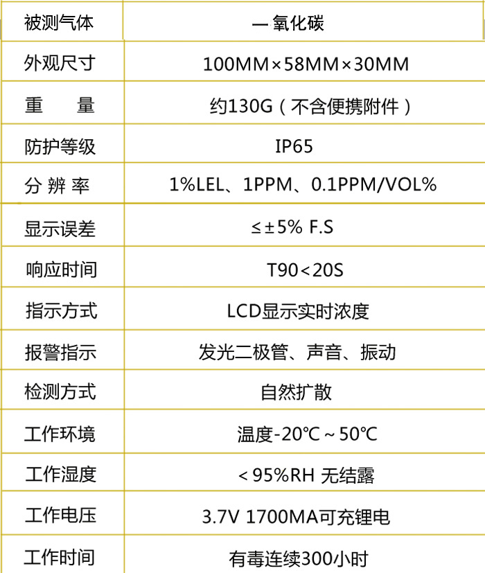 JD-JC1-CO一氧化碳氣體檢測報警儀,是一種可連續(xù)檢測泄漏氣體濃度的本質(zhì)安全性設(shè)備。它適用于防爆場所氣體泄露搶險,化工、冶煉、燃氣、制藥等需要安全檢測有毒有害氣體泄漏的防爆炸防中毒的場所。JD-JC1-EX便攜式氣體探測器采用自然擴散方式檢測氣體,敏感元件采用優(yōu)質(zhì)氣體傳感器,具有極好的靈敏度和出色的重復性;儀器采用嵌入式微機控制,簡單操作,功能齊全,可靠性高,具有多種自適應(yīng)能力;使用點陣液晶顯示屏,直觀清晰;小巧美觀的便攜設(shè)計不僅使您愛不釋手更便于您移動使用。便攜式氣體探測器外殼采用高強度工程塑料,復合防滑橡膠而成,強度高,手感好,并且防水、防塵、防爆。